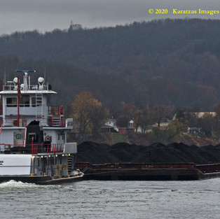 Seen here sailing upstream via the Pike Island Locks & Dam at Wheeling, WV. on Ohio River (appr. 84 miles downstream from Pittsburgh, PA), with a unit-tow of coal barges (15 barges). More on the Pike Island Locks & Dam from the U.S. Army Corps of Engineers website can be found here.
