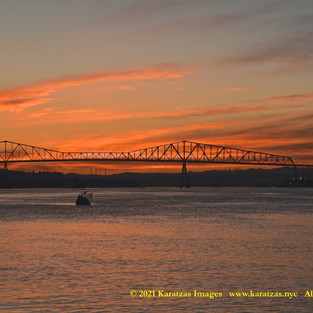 Port Rainier, Columbia River, Oregon: Sunset Images of Pushboats MV 'Kathryn B', MV 'Willamette'